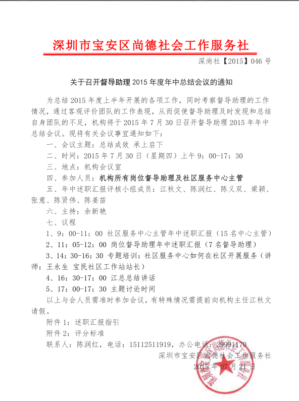 关于召开督导助理2015年度年中总结会议的通知