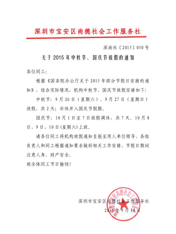 关于2015年中秋节、国庆节放假的通知