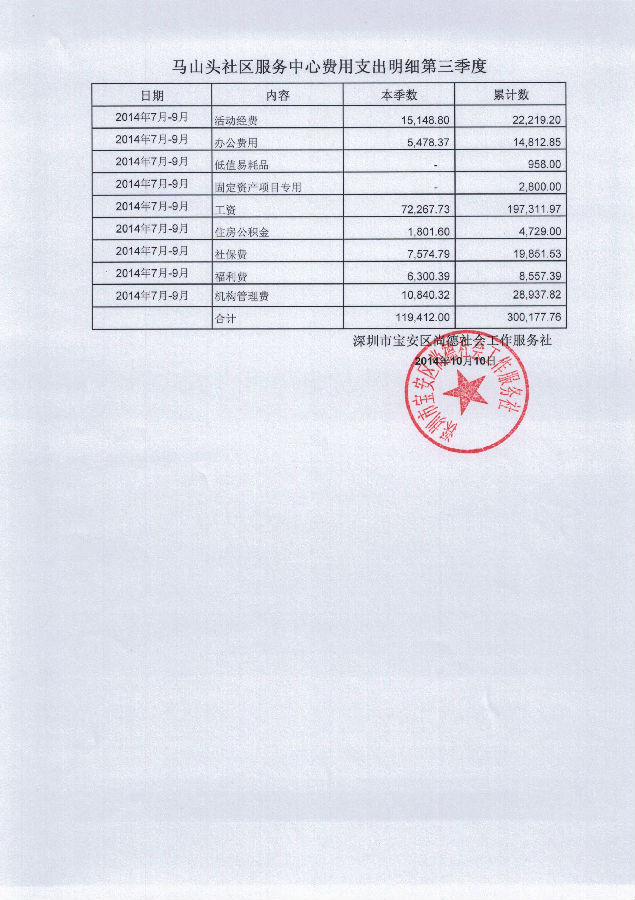 马山头社区服务中心费用支出明细第三季度的公示