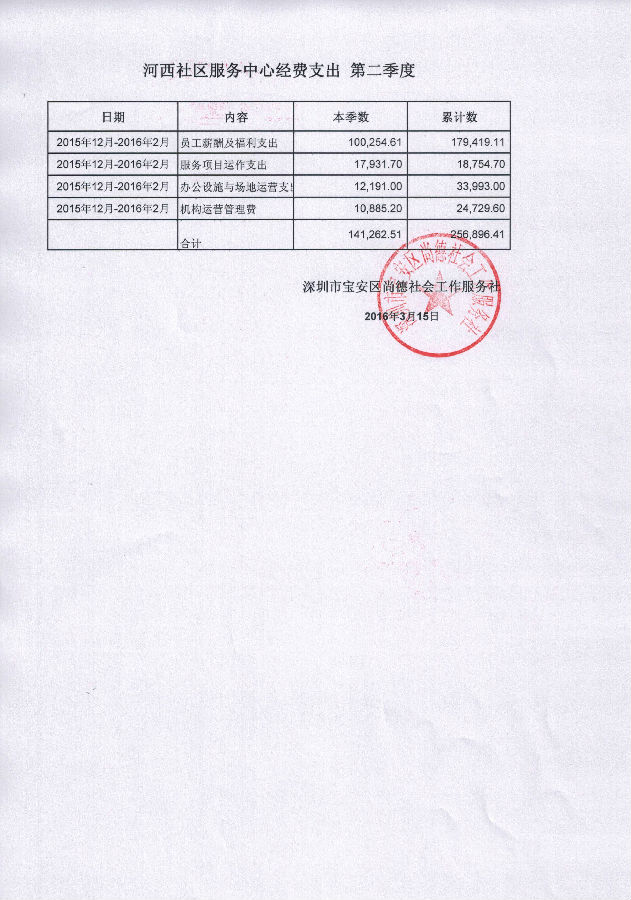 河西社区服务中心第二季度经费支出