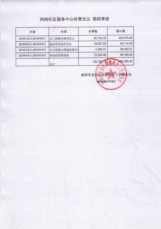 河西社区服务中心第四季度经费支出