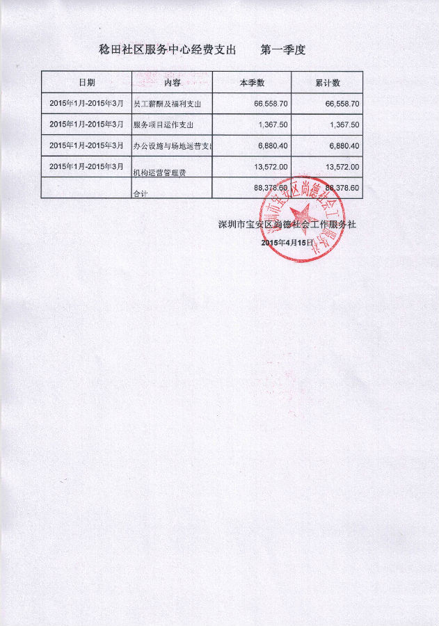 稔田社区服务中心第一季度经费支出