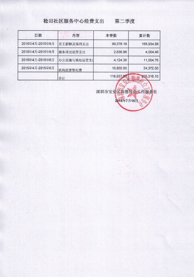 稔田社区服务中心第二季度经费支出