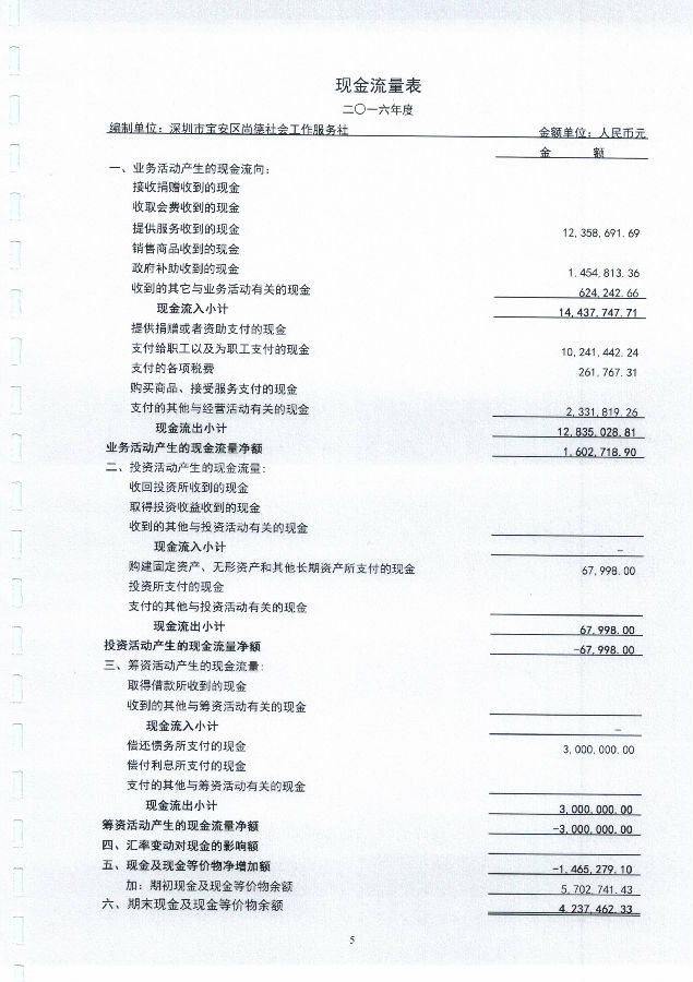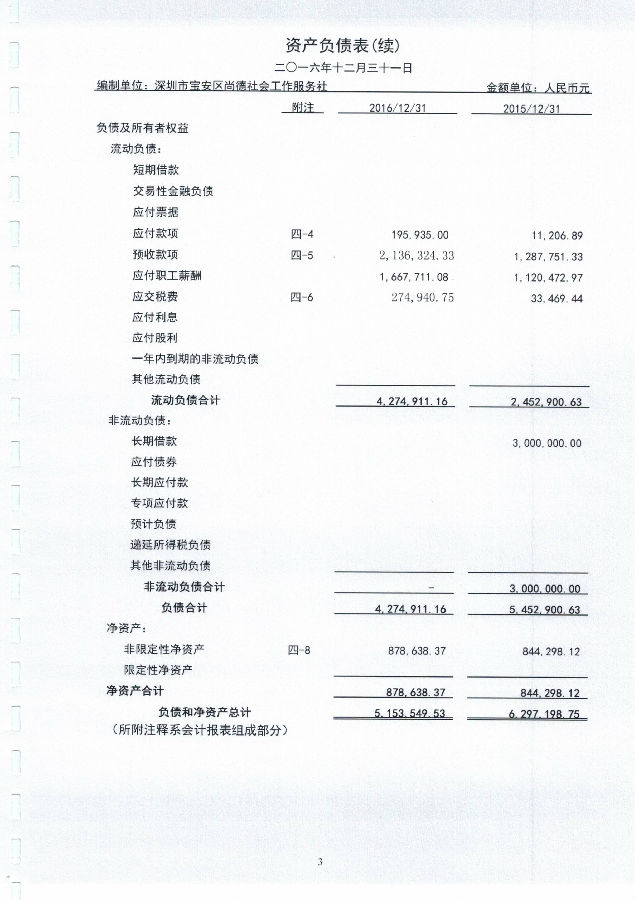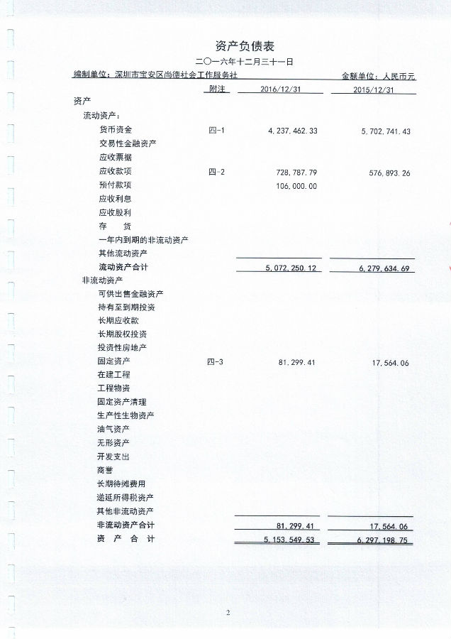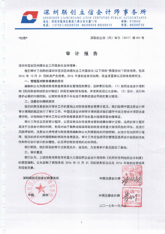 深圳市宝安区尚德社会工作服务社2016年度财务审计报告的公示