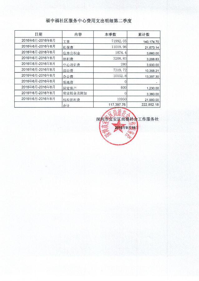 福中福社区服务中心2016年6月-2016年8月费用支出明细的公示
