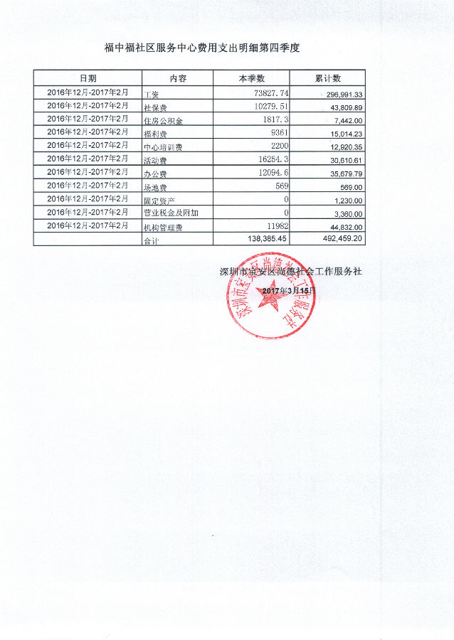福中福社区服务中心2016年12月-2017年2月费用支出明细的公示