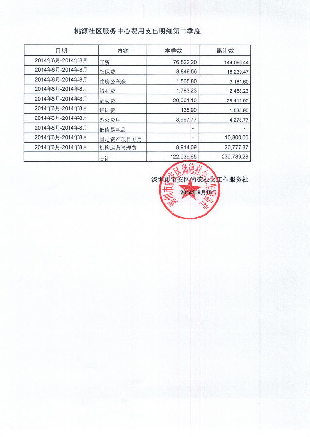 桃源社区服务中心2014年6月-2014年8月费用支出明细的公示