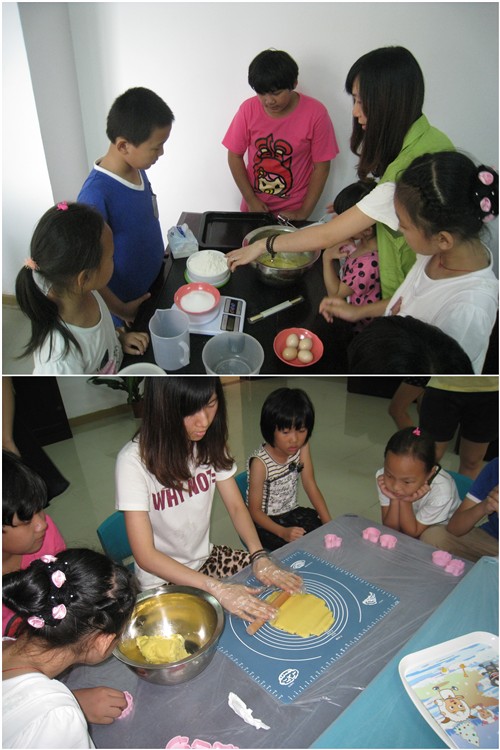 暑期已经过了一半,学生们认真学习知识,为了让他们无论在校内还是在校外,我们这里是个可以让他们解压和放松的场所 ,是个可以给他们带来欢笑和爱的城堡。引领每个来到这里的人开始幸福的烘焙之旅!2013年8月10日星期六下午,社区开展了奇妙的烘焙之旅。