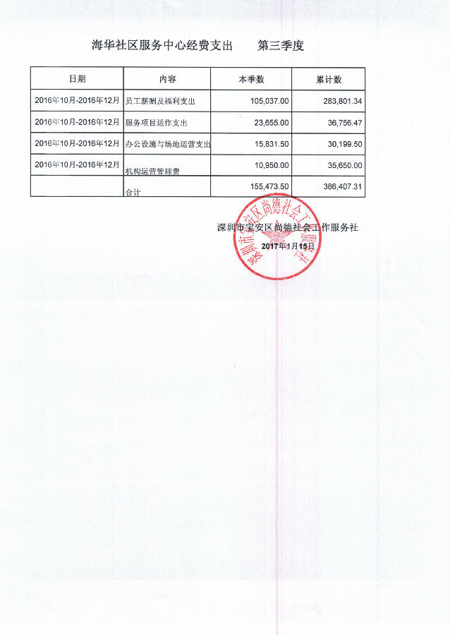 海华社区服务中心2016年10月-2016年12月经费支出的公示