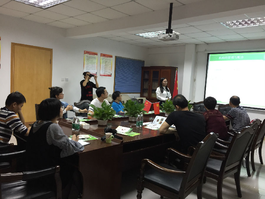 首先带领海宁参访团参观了尚德社工机构总部,就各个功能室进行了参观,对尚德的机构文化、党支部建设做了简要的介绍。然后司法领域初级督导就参访团感兴趣的政府购买社工服务项目、机构对社工的管理与培养、社矫社工的优势与专业性的体现等几个方面进行了PPT介绍。在介绍后的交流中,区司法局社矫科龙科对宝安区的社矫工作情况、司法社工的发展历程、社矫工作中社工的参与情况、社矫工作中的限制因素、未来发展的一些思路等进行了介绍。海宁市参访团对如何体现服务成效与尚德督导进行了交流。
