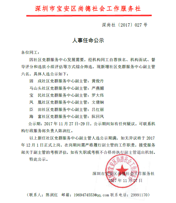 关于人事任命的公示