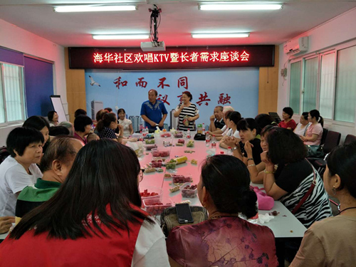 为丰富社区长者的娱乐生活、拓宽社区长者的人际关系网,海华社区党群服务中心于2018年7月5日在居民议事厅开展了“欢唱KTV”活动。