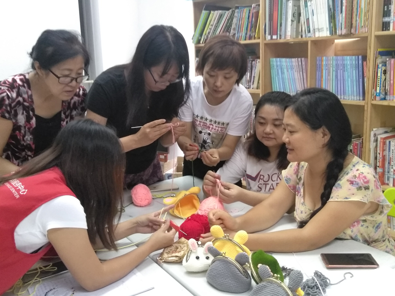 9月10日活动开始,社工引导参与者相互认识并介绍此次手工小组学习制作的口金包作品将作为后期探访社区长者及特殊群体的礼物。“好有意义的活动啊”听完社工的介绍,参与者刘女士感慨到。接着社工开始教参与者学习制作口金包,从怎么拿钩针、怎么抓线、怎么起针一步步的教,因为很多是使用钩针钩织工艺品的新手,她们对怎么抓线、怎么钩住线还不会松掉是一个很大的挑战,社工教几遍之后除了几个曾经学过用钩针钩织工艺的成员,其他新手还是掌控不了手中的线。于是学会的成员教不会的成员,社工也不厌其烦的教新手,直到掌握为止。小组总共有五节,经过五节课的钩织,每个成员的口金包身也逐渐成形,制作快的成员,口金身不仅钩针完成,还把口金及装饰品制作完,其他成员看到手工成品欣喜不已,钩织慢的成员还申请把作品带回家,利用更多的时间完成自己的作品。