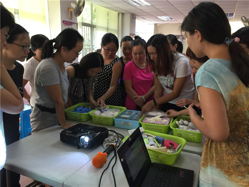 此次志愿者急救小组一共有五节。第一节讲师从儿童意外伤害的案例分析着手,带着大家认识儿童安全的“一级预防”。第二节讲师从认识急救包开始带着大家认识儿童安全的“二级预防”,并通过演练和实操的方式让大家一起练习如何进行伤口的紧急处理,来参加的志愿者们都称,原来家里备得急救包药品很多都过期了,回去要赶紧更换。第三节的小组中,讲师向志愿者们展示了,如何在日常生活中将儿童意外伤害的防护及急救技能普及到身边的亲戚、朋友,向志愿者们普及了拨打120的要点和认识各医院、急诊科;第四节讲师带着志愿者们一步一步学习如何正确的做单人徒手心肺复苏。讲师强调对于心脏骤停的伤者,及时实施心肺复苏是最佳的急救措施。接下来的第五节,讲师为志愿者们讲解并演练了,当遇异物卡喉时如何实施海姆立克急救法;伤患的评估以及演练,让大家实操了昏迷伤患的紧急翻身术。