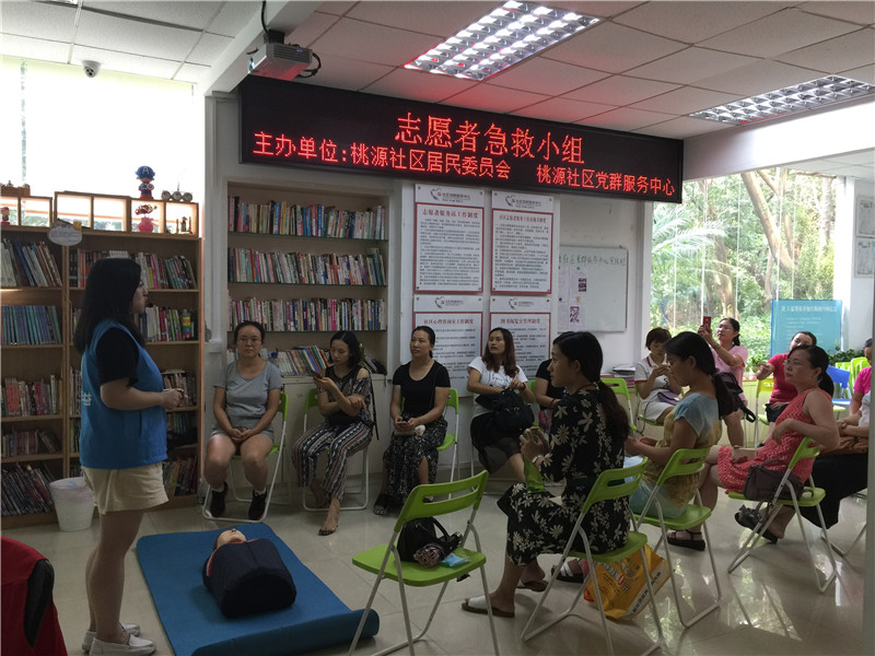 2018年9月,西乡街道桃源社区居委会联合桃源社区党群服务中心在桃源社区开展了志愿者急救小组活动。该小组邀请了蓝雨伞的讲师为社区16名志愿者讲解并演练专业的急救知识。
