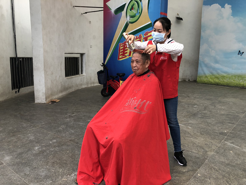 现场,社工设置签到区、书信区、贴膜区、理发区。社区内积极参与义工活动的龚阿姨和胡叔叔协助社工在签到区和书信区分发宣传册,为社区居民讲解中心老年人领域的服务内容,以吸引更多的居民参与中心活动;引导社区小朋友在明信片写下对爷爷奶奶、外公外婆等长者的祝福。在贴膜区,社工邀请到闪电修团队免费为社区长者贴换手机钢化膜及检测手机软件。换完手机膜的李阿姨还“缠”着义工咨询手机的问题:“平时孩子上班,下班晚回来又要休息,我都不敢打扰,有什么不懂也不好开口。不过今天多亏这位小帅哥,教了我好多次,也很有耐心,太感谢了!”在理发区,社工邀请到社区义工美妈为社区长者义剪。理完发的方叔叔对义工美妈赞不绝口:“这年轻人真好,免费为我们老人家剪头发,人美心美,手艺好对我们老人家更好。”