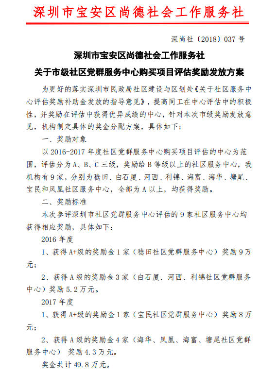 市级社区党群服务中心购买项目评估奖励发放方案