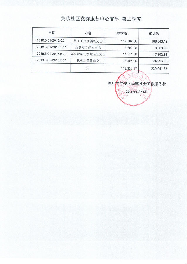 共乐社区党群服务中心支出 第二季度