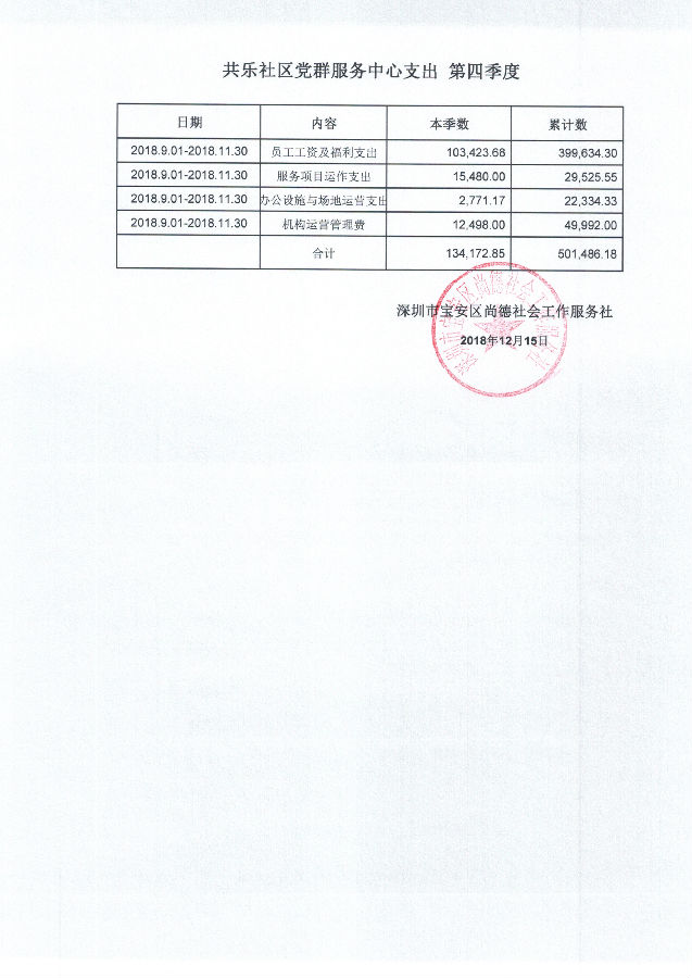 共乐社区党群服务中心支出 第四季度