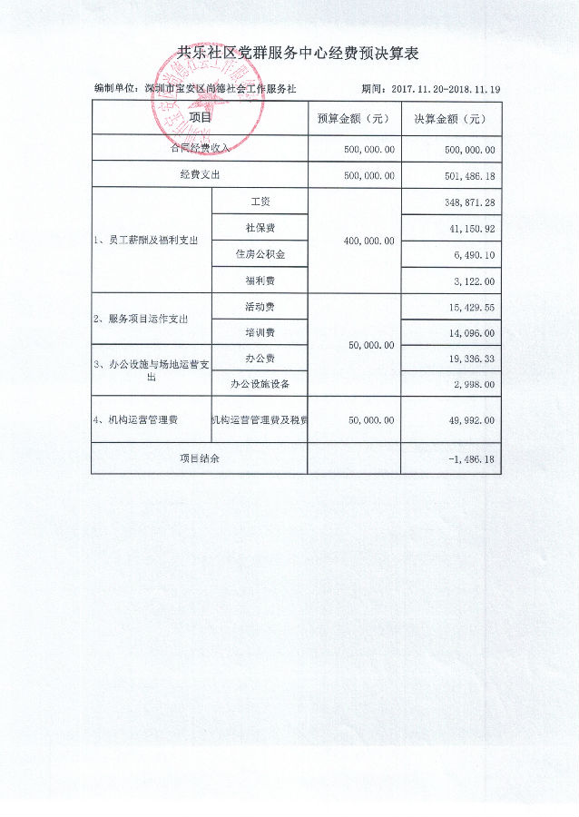 共乐社区党群服务中心经费预决算表
