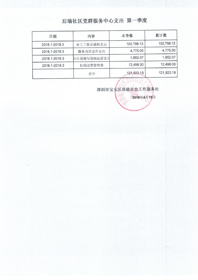 后瑞社区党群服务中心支出 第一季度
