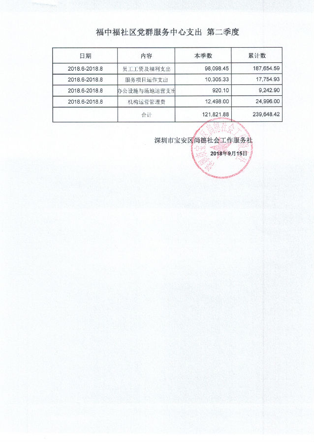 福中福社区党群服务中心支出 第二季度