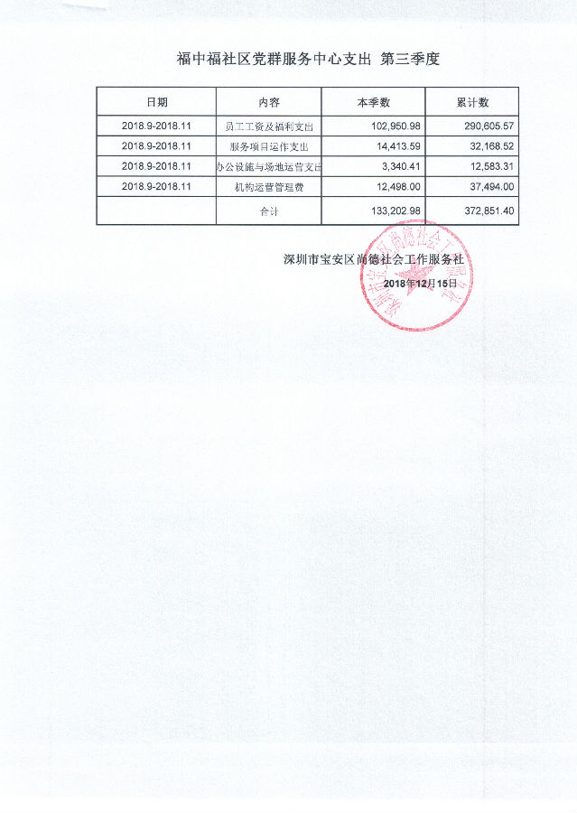 福中福社区党群服务中心支出 第三季度