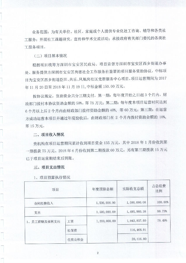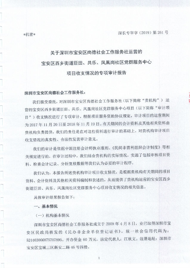 西乡街道臣田、共乐、凤凰岗社区党群服务中心项目收支情况专项审计报告
