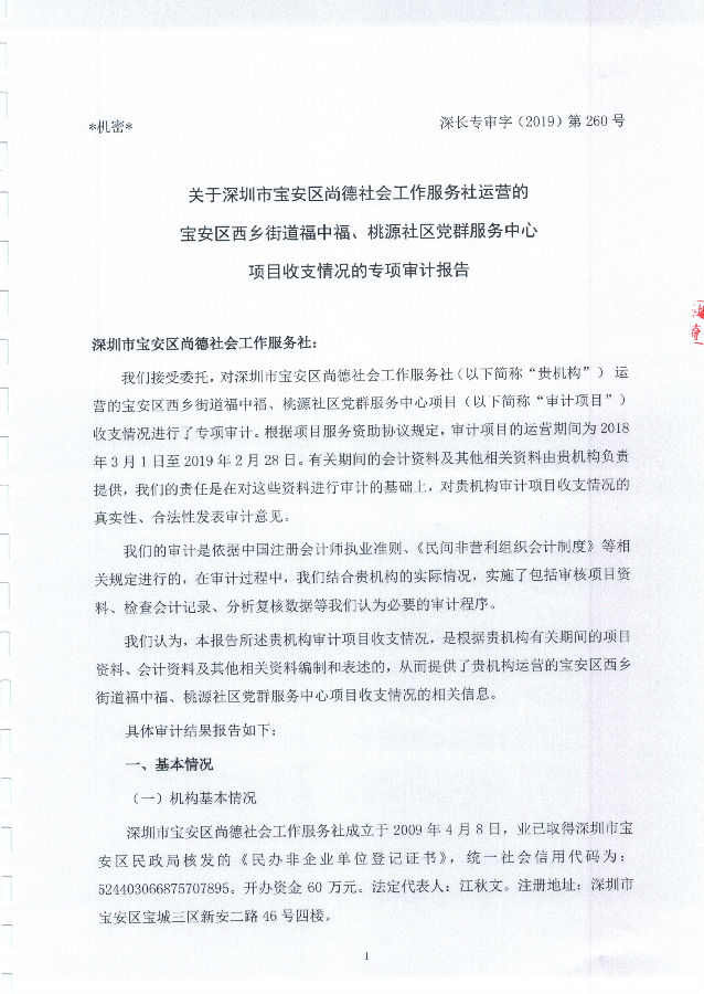 西乡街道桃源、福中福社区党群服务中心项目收支情况专项审计报告