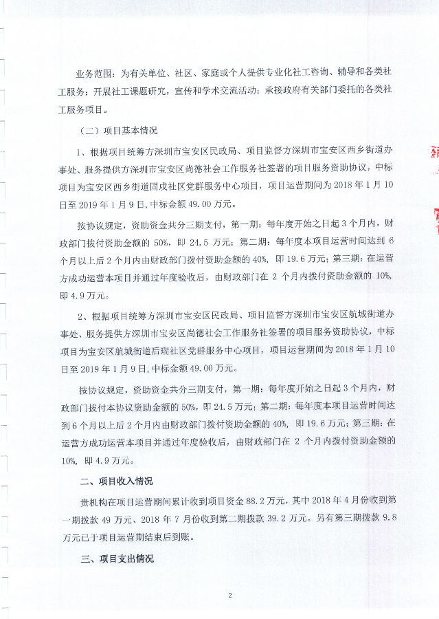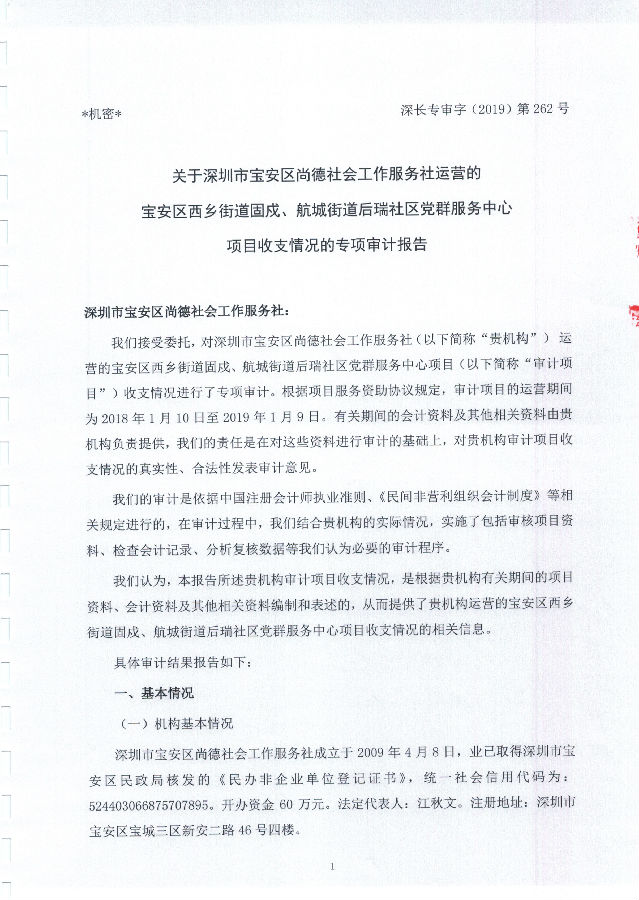 西乡街道固戍、航城街道后瑞社区党群服务中心项目收支情况专项审计报告