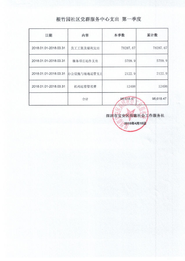 根竹园社区党群服务中心支出-2018年第一季度