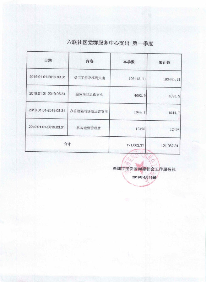六联社区党群服务中心支出 第一季度