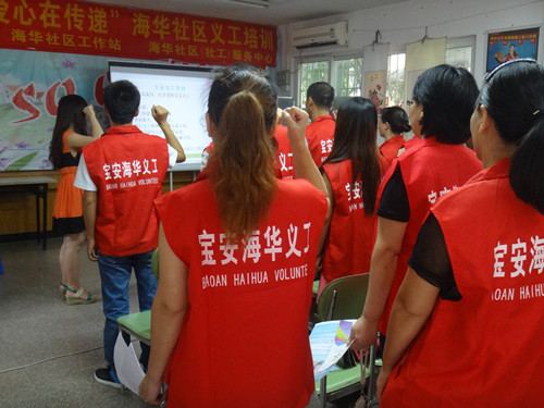 最让人激动的往往是最后的宝安义工宣誓仪式。简单的宣誓仪式,却给我们自己立下一个“约定”:“尽已所能,不计报酬,帮助他人,服务社会。践行义工精神,传播先进文化,为建设团结互助、平等友爱、 共同前进的美好社会贡献力量。”期待新加入的义工朋友参与更多社区的义工服务活动,给社会的进步和居民的生活带来美好的变化。