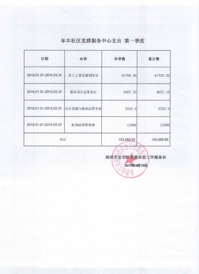 年丰社区党群服务中心支出 第一季度