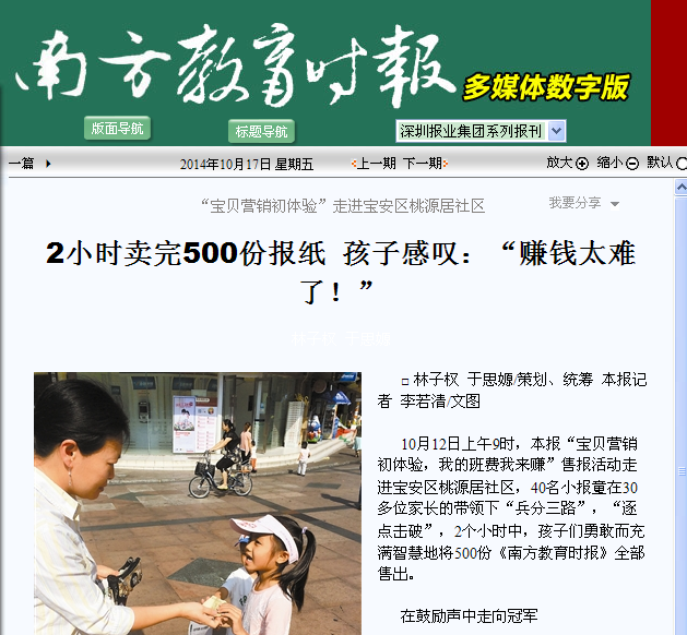 南方教育时报 2小时卖完500份报纸 孩子感叹:赚钱太难了