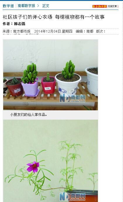 南方都市报 社区孩子们的开心农场 每棵植物都有一个故事