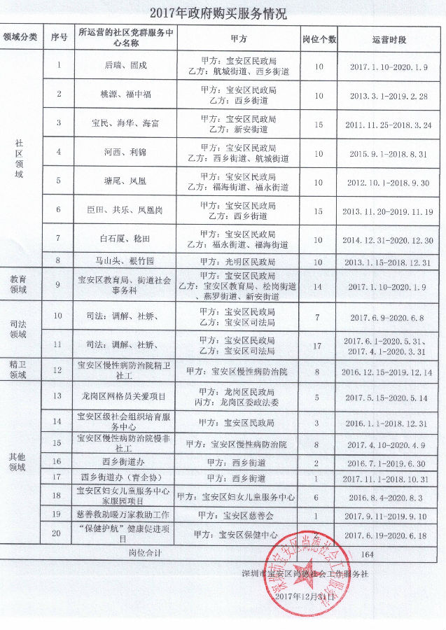 关于深圳市宝安区尚德社会工作服务社2017年政府购买服务的公示