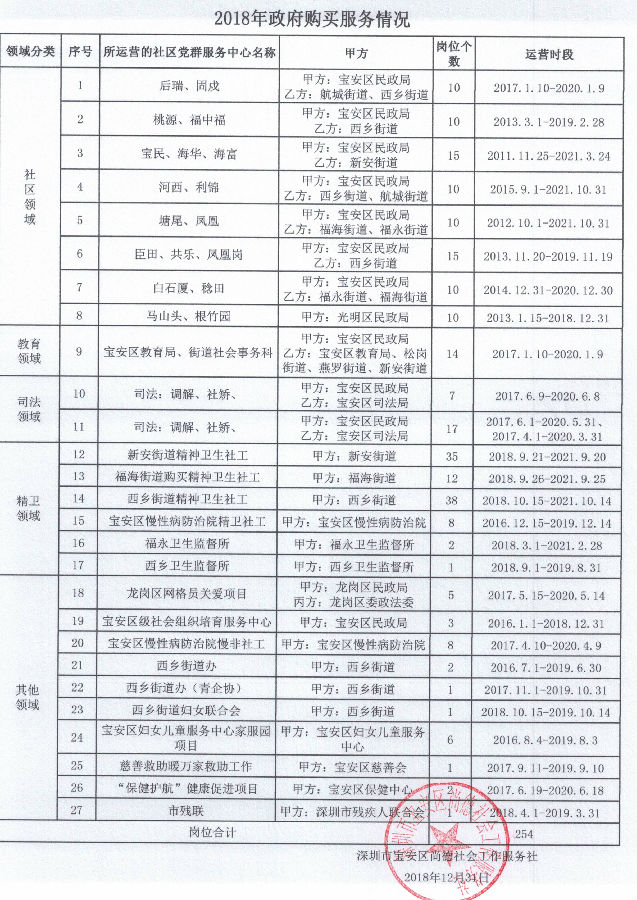 关于深圳市宝安区尚德社会工作服务社2018年政府购买服务的公示