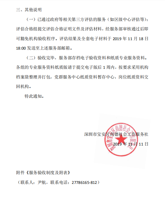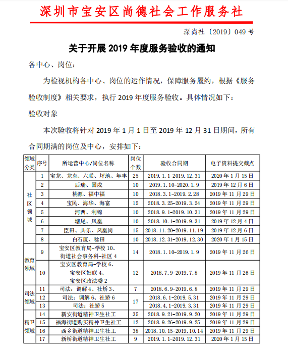 深尚社〔2019〕049号 关于开展2019年度服务验收的通知