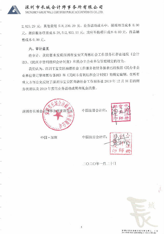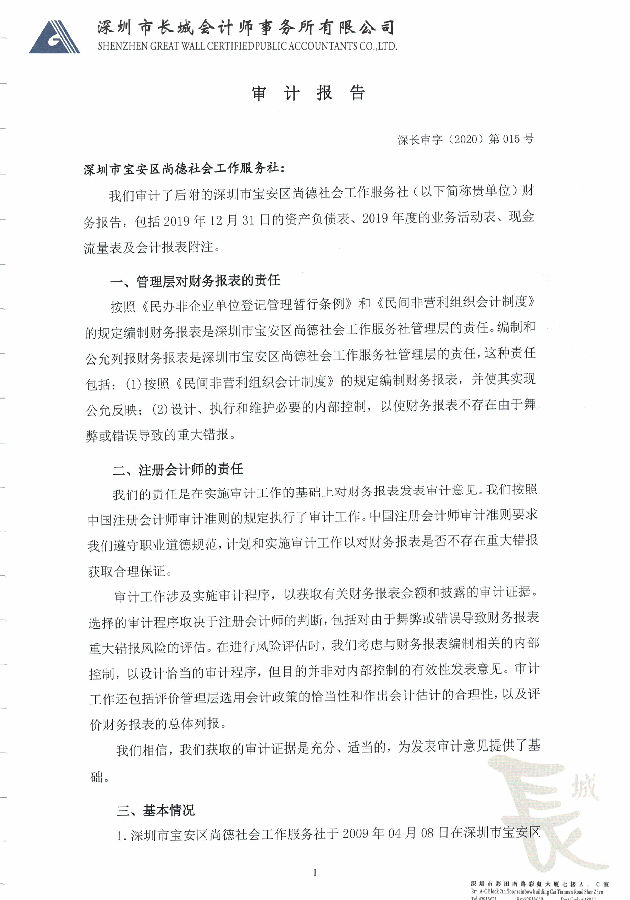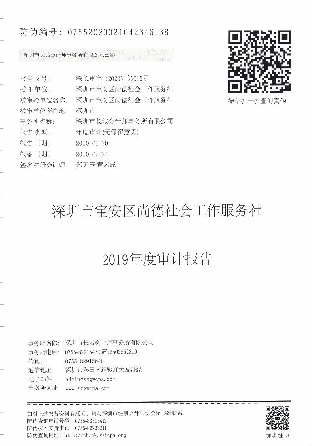 深圳市宝安区尚德社会工作服务社2019年度审计报告