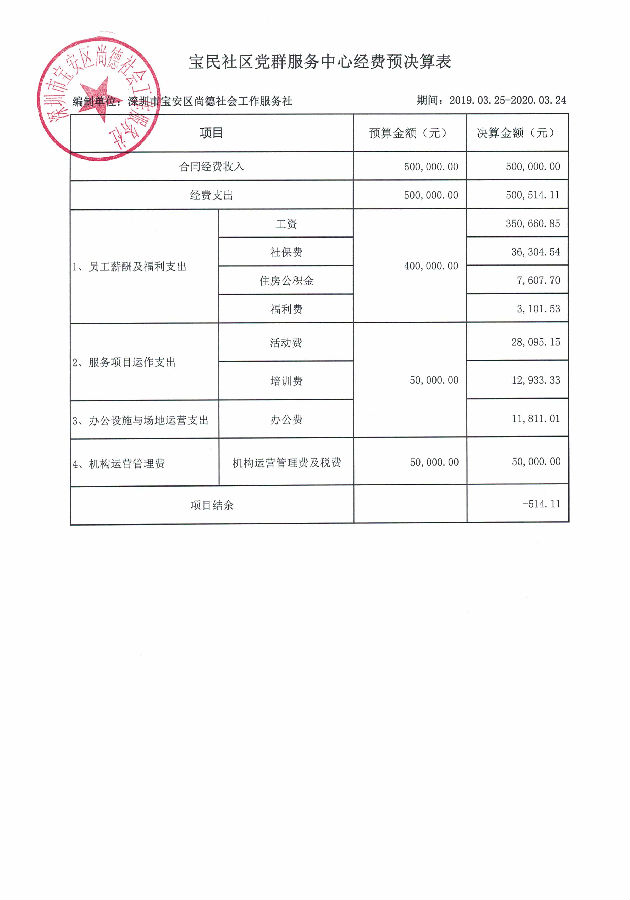 宝民社区党群服务中心经费预决算表