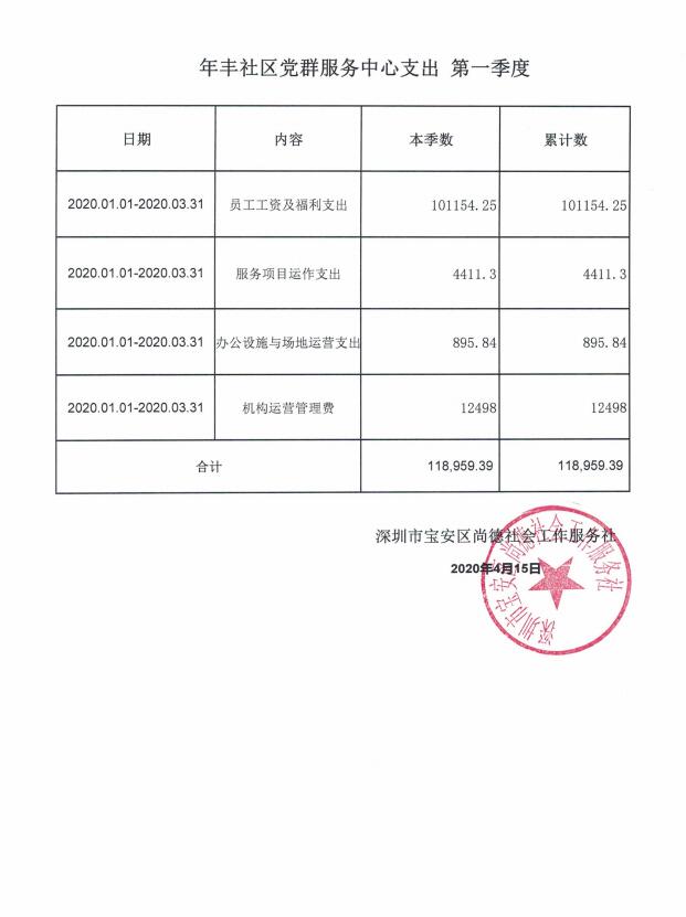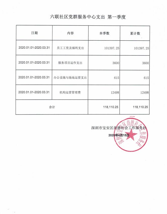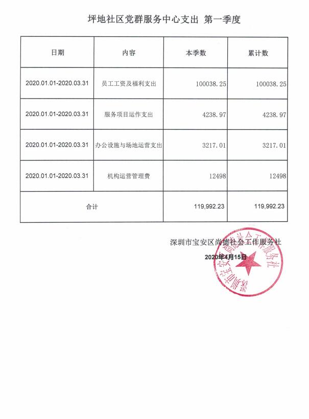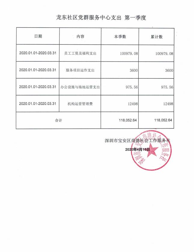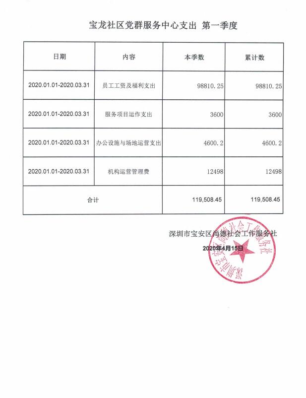 龙岗区六联社区、龙东社区、宝龙社区、坪地社区、年丰社区党群服务中心支出第一季度公示