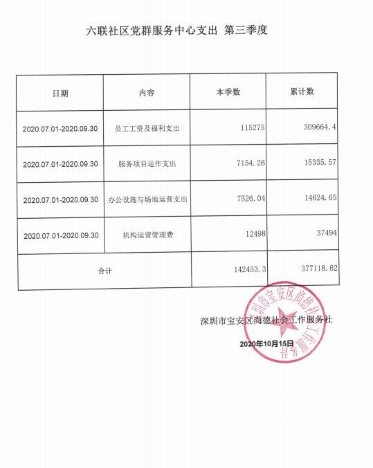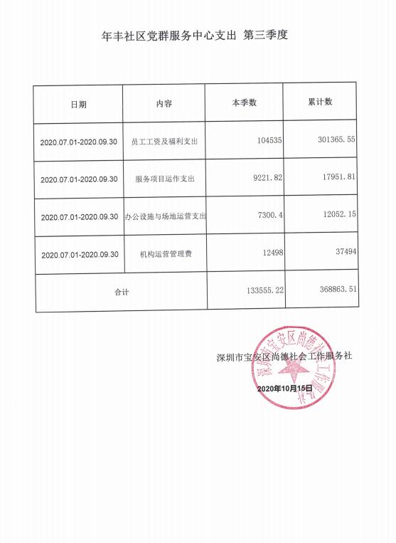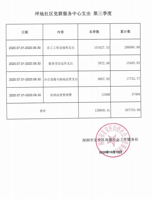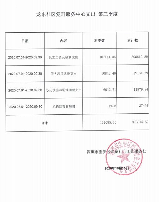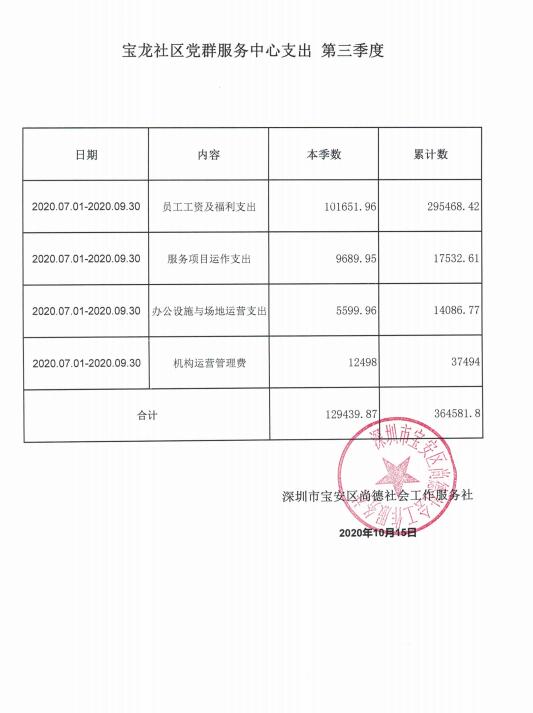 龙岗区六联社区、龙东社区、宝龙社区、坪地社区、年丰社区党群服务中心支出第三季度公示