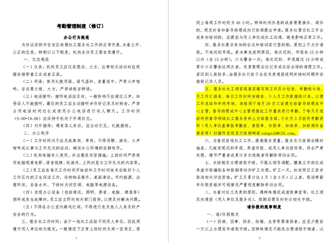 考勤管理制度公示