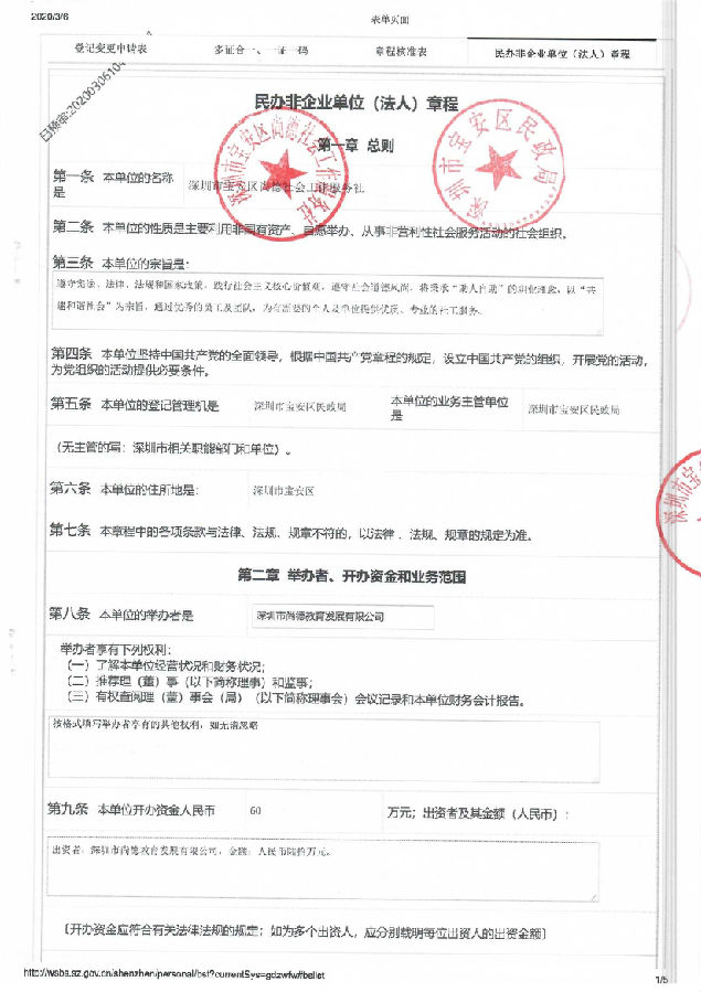 关于深圳市宝安区尚德社会工作服务社章程变更的公示