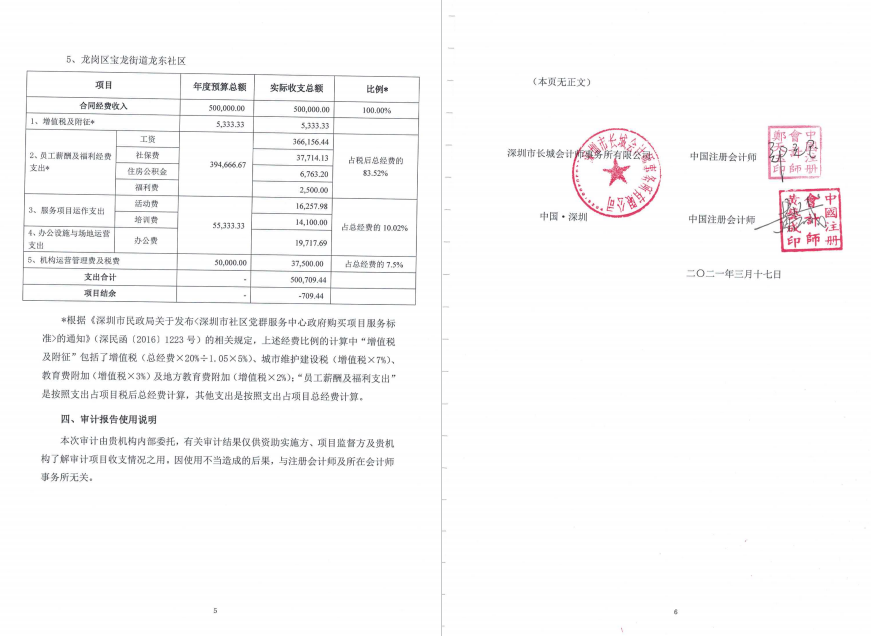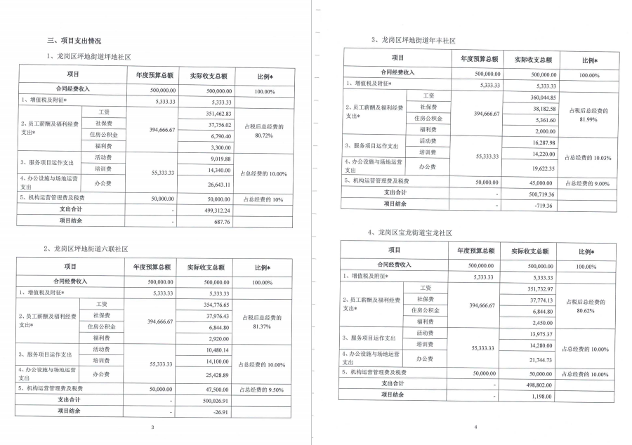 龙岗区坪地街道坪地、六联、年丰社区党群服务中心、宝龙街道宝龙、龙东社区党群服务中心项目收支情况的专项审计报告