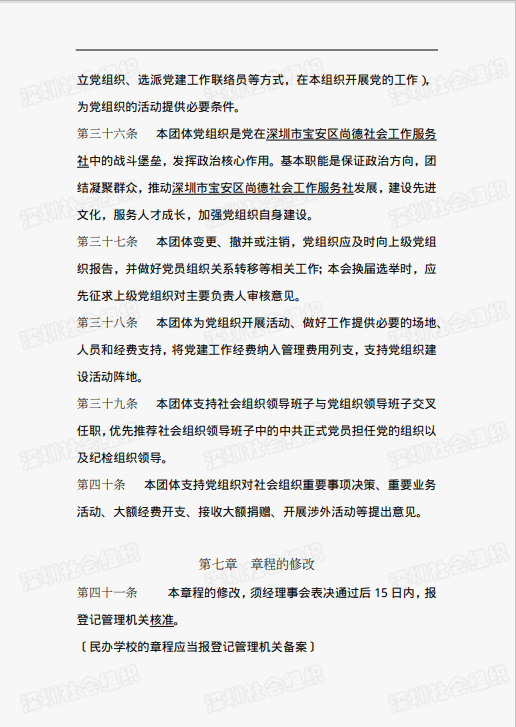 关于深圳市宝安区尚德社会工作服务社章程的公示