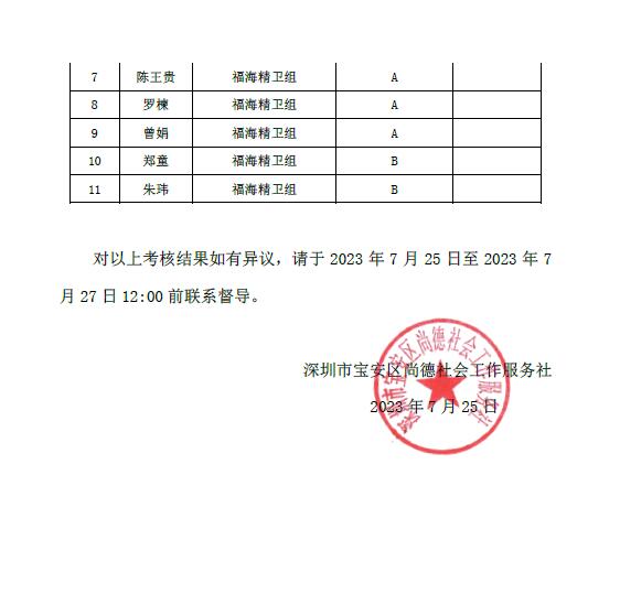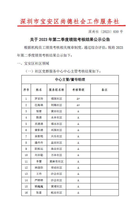 深尚社〔2023〕030号 关于2023年第二季度绩效考核结果公示公告