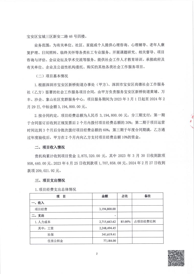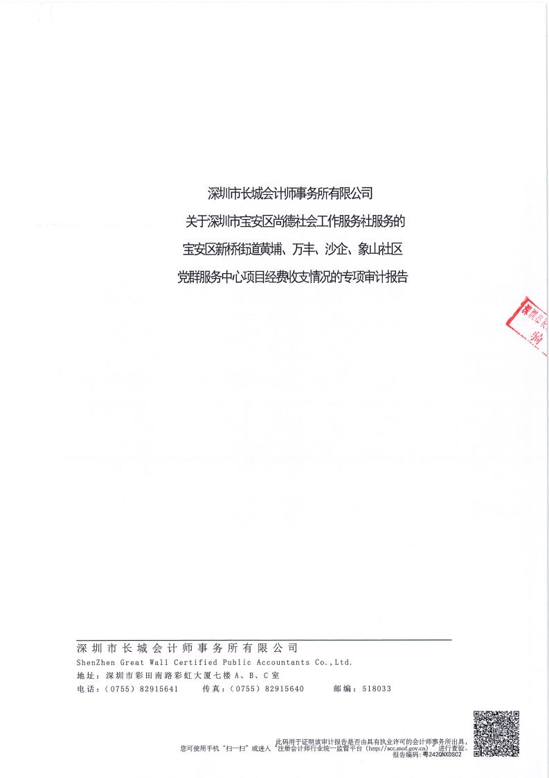 关于深圳市宝安区尚德社会工作服务社宝安区新桥街道黄埔、万丰、沙企、象山社区党群服务中心项目经费收支情况的专项审计报告的公示