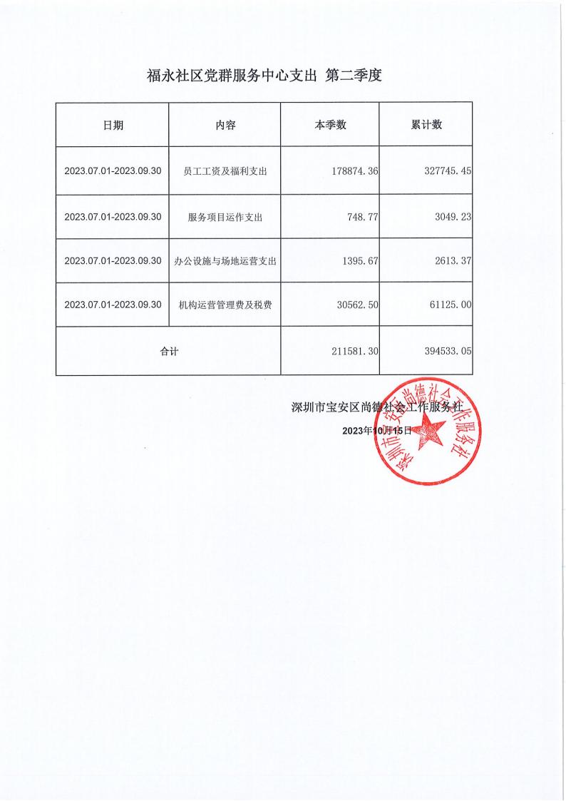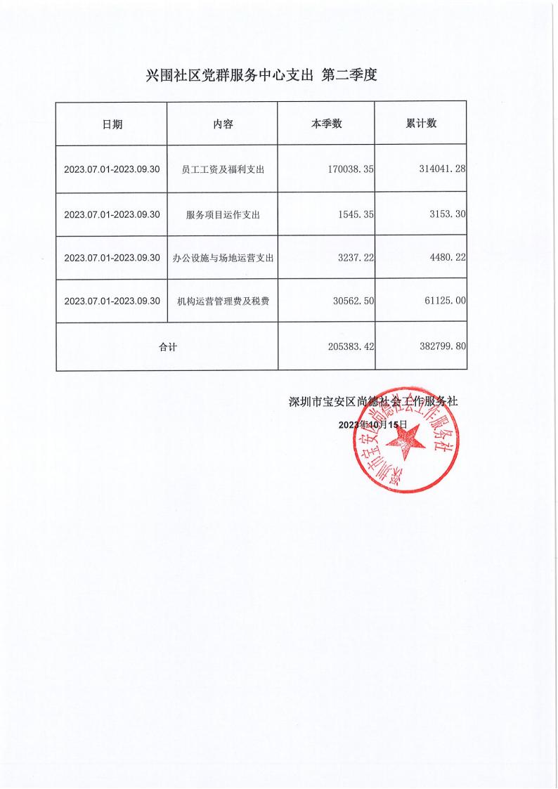 关于深圳市宝安区尚德社会工作服务社宝安区福永街道福围、福永、兴围社区党群服务中心支出第二季度的公示